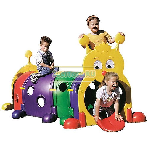 Гусеница может использоваться как домик, имитировать поезд благодаря имеющимся окошкам, или быть лестницей с лапками в качестве ступенек.