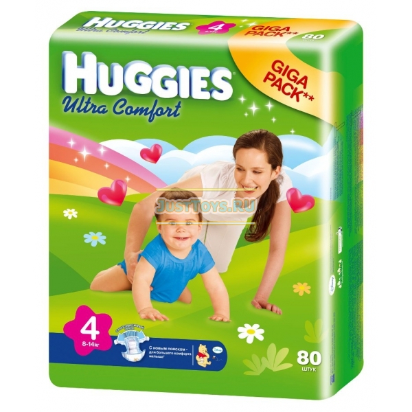 Подгузники Huggies Ultra Comfort Giga(4)8/14 кг прекрасно сидят на малыше и впитывают на 20% больше влаги. В состав входит уникальная поверхность In-Out, которая пронизана миллионами пор, благодаря которым осуществляется воздухообмен. Благодаря новым разработкам, подгузники Хаггис Ультра Комфорт Гига(4)8/14 кг прекрасно удерживают влагу внутри подгузника, не давая коже ребёнка раздражаться.