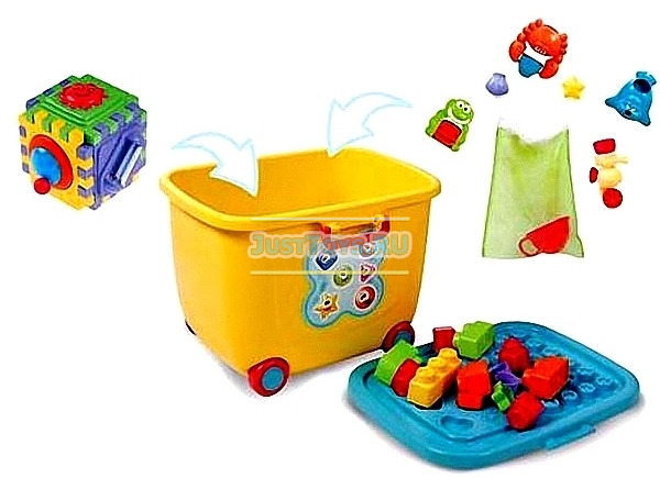 В этом удобном и мобильном желтом ящичке на колесиках малыш сможет хранить все свои любимее игрушки.