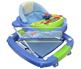 У ходунков складываемая конструкция, колеса для транспортировки, музыкальная панель, погремушки. Батут для прыжков.Максимальный вес : 25 кгРазмер товара: 13 х 60 х 103 см